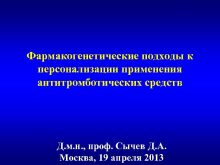 Фармакогенетические подходы к персонализации применения антитромботических средств Д