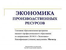 ЭКОНОМИКА ПРОИЗВОДСТВЕННЫХ РЕСУРСОВ Основная образовательная программа высшего профессионального