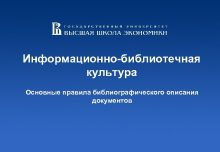 Информационно-библиотечная культура Основные правила библиографического описания документов