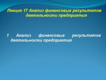 Лекция 17 Анализ финансовых результатов деятельности предприятия 1