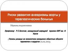Риски развития аневризмы аорты у терапевтических больных Образец