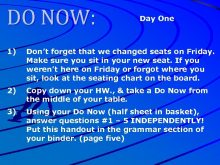 DO NOW Day One 1 Don t forget that