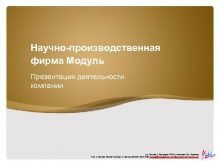 Научно-производственная фирма Модуль Презентация деятельности компании ул Лесная