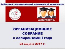 Кубанский государственный медицинский университет ОРГАНИЗАЦИОННОЕ СОБРАНИЕ с аспирантами