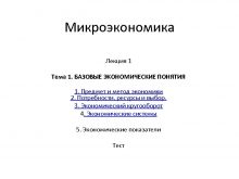 Микроэкономика Лекция 1 Тема 1 БАЗОВЫЕ ЭКОНОМИЧЕСКИЕ ПОНЯТИЯ