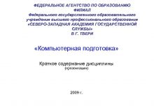 ФЕДЕРАЛЬНОЕ АГЕНТСТВО ПО ОБРАЗОВАНИЮ ФИЛИАЛ Федерального государственного образовательного