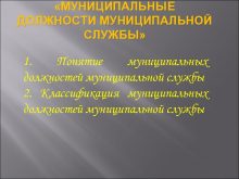 МУНИЦИПАЛЬНЫЕ ДОЛЖНОСТИ МУНИЦИПАЛЬНОЙ СЛУЖБЫ 1 Понятие муниципальных