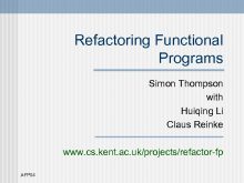 Refactoring Functional Programs Simon Thompson with Huiqing Li