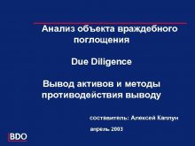 Анализ объекта враждебного поглощения Due Diligence Вывод активов