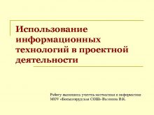 Использование информационных технологий в проектной деятельности Работу выполнила