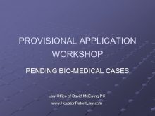 PROVISIONAL APPLICATION WORKSHOP PENDING BIO-MEDICAL CASES Law Office
