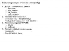 Доступ к параметрам ORACLE и к словарю БД