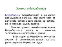 Заетост и безработица Безработица Безработицата е социалноикономическо явление