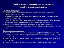 Особенности экономического анализа кодифицированного права Основная литература 1