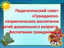Педагогический совет Гражданскопатриотическое воспитание детей дошкольного возраста Воспитание