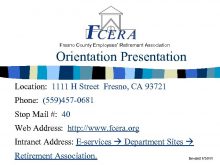 Fresno County Employees Retirement Association Orientation Presentation Location