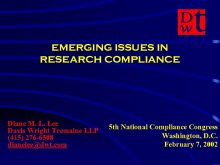 EMERGING ISSUES IN RESEARCH COMPLIANCE Diane M L