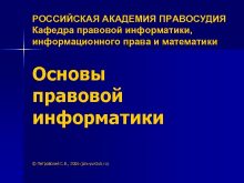 РОССИЙСКАЯ АКАДЕМИЯ ПРАВОСУДИЯ Кафедра правовой информатики информационного права