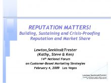 REPUTATION MATTERS Building Sustaining and Crisis-Proofing Reputation and