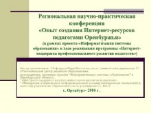 Региональная научно-практическая конференция Опыт создания Интернет-ресурсов педагогами Оренбуржья