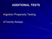ADDITIONAL TESTS Ignition Propensity Testing Toxicity Assays