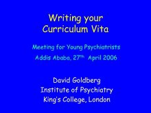 Writing your Curriculum Vita Meeting for Young Psychiatrists