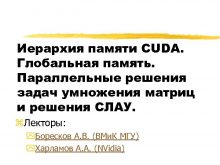 Иерархия памяти CUDA Глобальная память Параллельные решения задач