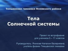 Тямшанская гимназия Псковского района Тела Солнечной системы Проект
