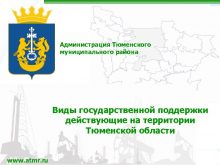 Администрация Тюменского муниципального района Виды государственной поддержки действующие