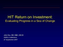 HIT Return on Investment Evaluating Progress in a