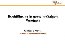 Buchführung in gemeinnützigen Vereinen Wolfgang Pfeffer www vereinsknowhow