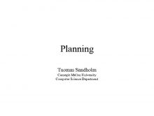 Planning Tuomas Sandholm Carnegie Mellon University Computer Science