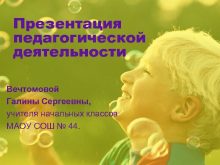Презентация педагогической деятельности Вечтомовой Галины Сергеевны учителя начальных