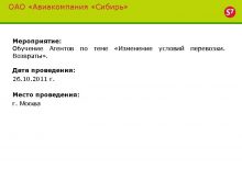ОАО Авиакомпания Сибирь Мероприятие Обучение Агентов по теме