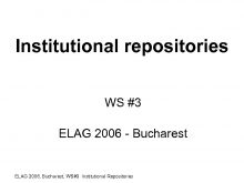 Institutional repositories WS 3 ELAG 2006 — Bucharest