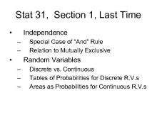Stat 31 Section 1 Last Time Independence