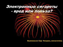 Электронные сигареты — вред или польза Выполнила Е