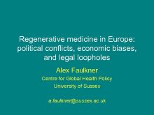 Regenerative medicine in Europe political conflicts economic biases