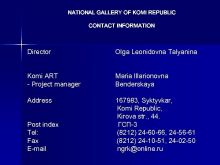 NATIONAL GALLERY OF KOMI REPUBLIC CONTACT INFORMATION Director