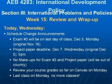 AEB 4283 International Development Policy Section III International