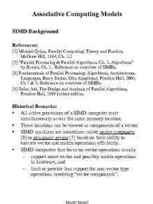 Associative Computing Models SIMD Background References 3 Michael