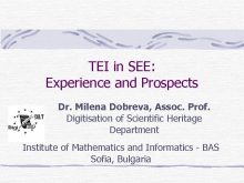 TEI in SEE Experience and Prospects Dr Milena