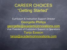 CAREER CHOICES Getting Started Curriculum Instruction Support