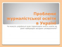 Проблеми журналістської освіти в Україні Чи можуть українські