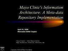 Mayo Clinic s Information Architecture A Meta-data Repository Implementation