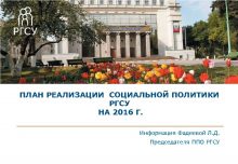 ПЛАН РЕАЛИЗАЦИИ СОЦИАЛЬНОЙ ПОЛИТИКИ РГСУ НА 2016 Г