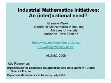 Industrial Mathematics Initiatives An inter national need Graeme Wake