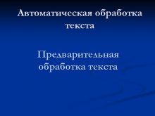 Автоматическая обработка текста Предварительная обработка текста Предварительная