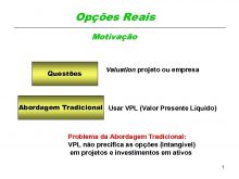Opções Reais Motivação Questões Valuation projeto ou empresa