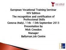 European Vocational Training Seminar XXV Edition The recognition